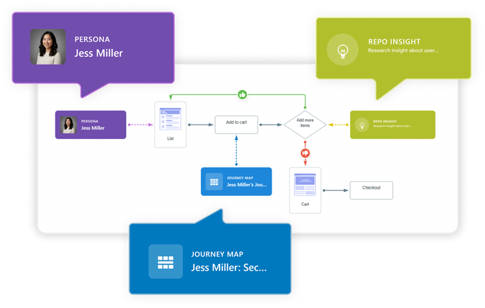 Flow diagrams in UserBit can now be directly connected to personas, insights, and journey maps to keep flows grounded in real user context.